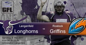 Ebenso wie die Griffins in die zweite Bundesliga aufgestiegen, starteten die Langenfelder allerdings mit einem Paukenschlag in die Saison. Gegen das Top-Team der Paderborn Dolphins konnte ein überraschend deutlicher 57-27 Sieg eingefahren werden. In der vergangenen Woche setzte es dann mit 19-38 aber auch die erste Niederlage bei den Bonn Gamecocks. Saisonziel der besonders offensivstarken Longhorns um den amerikanischen Spielmacher Jose Sanchez, ist genau wie bei den Griffins der Klassenverbleib. Für die Griffins also ein sehr wichtiges Spiel.
