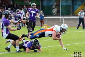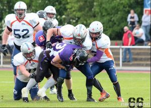 Über die Stationen 14-6 und 28-19 arbeiteten sich die Griffins so zur Halbzeit einen 9-Punkte-Vorsprung heraus. Die Longhorns gefielen ihrerseits durch abwechslungsreiches Lauf-und Passspiel, welches der Verteidigung der Hansestädter alles abforderte und blieben so in Schlagdistanz. In der zweiten Hälfte konnten die Rostocker ihren Vorsprung dann weiter ausbauen. Direkt mit dem ersten Spielzug der zweiten Hälfte kam es dabei zu einer Vorentscheidung. Herbert Whitehurst Jr. konnte den Ball vom amerikanischen Kick Returner der Longhorns frei schlagen und seinen eigenen Angriff wieder in Ballbesitz bringen. Die Verteidigung der Greifen packte nun auch besser zu und zeigte, dass sie über konditionelle Vorteile verfügte. So kamen die Longhorns im zweiten Spielabschnitt zu keinen weiteren Punkten, während die Offense der Griffins auf 38-19 erhöhen konnte. Der Rest war Jubel. Viel Zeit zum Verschnaufen haben die Helden aus der Hansestadt aber leider nicht, denn schon in der nächsten Woche steht das Spiel beim absoluten Ligafavoriten den Potsdam Royals an. Man hat sich vorgenommen, diese zumindest etwas zu ärgern…