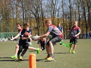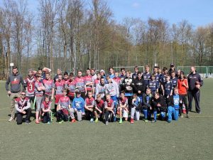 Der Kommentator von Greifswald-TV, die ausführlich über das Turnier berichteten, kommentierte unsere Jungs dementsprechend mit „spielerisch und physisch eine Nummer zu groß“ für die anderen Teams. Besonders fit an diesem Tag war Paul Händler, der gleich im ersten Spiel 3 Interceptions (gegnerische Pässe) fing. Sogar unser kleiner Max Paetow konnte kurz vor Schluss des Turnieres, in seinem allerersten Spiel, 2 Punkte nach Hause tragen. Herzlichen Glückwunsch!