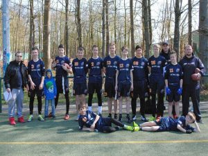 Unser Team bei der Mission Titelverteidigung, im letzten Jahr wurden unsere Jungs ja Landesmeister, wurde angeführt von Headcoach Toni Katzorke. Er wurde unterstützt von Lucas Rosenfeld und Andreas Supplie, 2 Herrenspieler, die unsere Jungs in diesem Jahr mit trainieren. Arthur Riemer (QB), Maximilian Ebeling (QB), Friedrich Landgraf, Viktor Paetow, Paul Händler und Paul Spiller, welche bereits im Vorjahr super Leistung zeigten, wurden von unseren Neueinsteigern Max Paetow, Torben Büttner, Hannes Fichte, Dennis Mähling und Frowin Thiede tatkräftig unterstützt. Sie alle präsentierten sich als ein tolles Team !