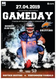 Die Gäste aus Vorpommern, die für ihre gut organisierte und vor allem disziplinierte Spielweise bekannt sind, sind dabei ein guter Gegner und verfolgen ähnliche Ziele. Für die GriFFANS wird das Spiel nach dem überzeugenden Auftritt beim Erstligisten aus Dresden die erste Möglichkeit sein, ihr Team 2019 live zu erleben. Manager Jens Putzier freut sich insbesondere über die Möglichkeit, dieses Event im wunderschönen Stadion am Bodden in Ribnitz-Damgarten austragen zu können, und verspricht wie immer einen tollen Gameday: „Wir werden fast alles haben, was wir sonst auch benutzen oder aufbieten. Das ist natürlich ein großer logistischer Aufwand, aber unsere treuen Fans in Vorpommern sind das allemal wert. So wird das auch für uns im Hinblick auf die Gamedayabläufe als Orga Team eine Generalprobe für das Jahr 2019. Wir freuen uns jedenfalls auf diese Premiere und auf hoffentlich viele interessierte Footballfans!“