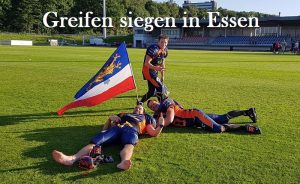 Am 10. Juni ging es für die Griffins zu den Assindia Cardinals nach Essen. Bereits in der Aufstiegsrelegation vor zwei Jahren standen sich beide Teams in Rostock gegenüber. Die Cardinals konnten das Spiel damals nur knapp mit 14:7 gewinnen und somit ein Jahr vor den Griffins in die GFL 2 aufsteigen. Die Essener verfügen über einen sehr starken Kader mit vielen ehemaligen und aktuellen deutschen Nationalspielern. Im Training konzentrierten sich die Griffins vorrangig auf die Schwachstellen, die in den beiden knappen Niederlagen zuvor gegen Paderborn und Langenfeld dominant waren. Und offenbar hatten sie damit Erfolg: Die Greifen konnten sich mit einem 47:27 in Essen durchsetzen. Der Defense der Greifen war es gelungen, nur 31 Lauf-Yards des Gegners zuzulassen und auch der Angriff der Griffins zeigte sich vor allem in der Redzone stark verbessert. Dementsprechend erleichtert war auch Head Coach Kuhfeldt: „Heute haben wir es endlich geschafft, ein Spiel zu beenden und auch nach schwächeren Phasen zurückzukommen und den Sieg zu erzwingen. Ich freue mich sehr für das gesamte Team!“. Mit diesem wichtigen Sieg verließen die Griffins vorerst die Abstiegsränge.