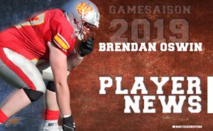 Der 1,90 m große und 130 Kg schwere Australier war im Vorjahr bereits in der ersten schwedischen Liga für die Uppsala 86´ers aktiv. Durch seine guten Leistungen dort konnte sich Oswin sogar eine Einladung für die Nationalmannschaft seines Heimatlandes erspielen. Im Anschluss an die europäische Footballsaison startete Oswin für die Brisbane Rhinos in der ersten australischen Liga, mit denen er das Endspiel, den dortigen Sunbowl erreicht hat.