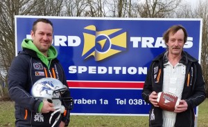 Seit der Saison 2015 sind auch sie große Griffins- und damit Football Fans. Sie besuchten eher zufällig eines der Heimspiele und sprachen die Verantwortlichen noch im Stadion an. „Diese tolle Sache hier müssen wir unterstützen. Die Stimmung ist großartig und dieser kleine sympathische Verein in Rostock kann sicher noch ein wenig Unterstützung vertragen.“… so war damals der Originalton. Nun gehen die Verantwortlichen des Logistikunternehmens, die zumeist kein Team der großen Worte sondern eher der Taten sind, schon in die dritte gemeinsame Saison. Dafür war „Chefdisponent“ Christian Eltner wie schon so oft in dieser Saison mit der ganzen Familie im Stadion und verkündete den Jungs von HC Kuhfeldt die Vertragsverlängerung gleich persönlich. Wir sagen DANKE und hoffen auch weiterhin auf eine erfolgreiche gemeinsame Saison 2016 !