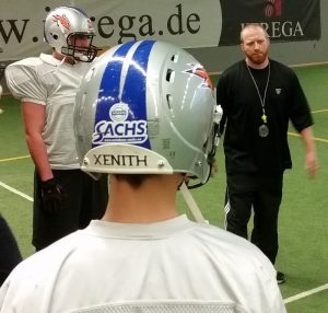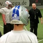 Am vergangenen Sonntag trainierte die Mannschaft dann erstmals gemeinsam in „Full Pads“. Dabei wurden die Griffins vom aktuellen Wide Receiver Coach der Berlin Adler, Johnny Schmuck, unterstützt. Der absolute Wide Receiver und Offense-Experte war sowohl als Spieler als auch als Trainer auf höchster europäischer Ebene sehr erfolgreich. Drei Stunden lang arbeitete Coach Schmuck mit den jungen, talentierten Passempfängern der Greifen. Head Coach Kuhfeldt:“ Ich freue mich sehr, dass wir Johnny endlich einmal hierher bekommen haben und noch mehr, dass es so aussieht, als ob wir das in der Pre-Season noch öfter schaffen. Unsere engagierten Positionstrainer und Spieler können davon wirklich sehr profitieren.“ Auch Coach Schmuck äußerte sich sehr positiv: „Ehrlich gesagt, habe ich das hier von mir vorgefundenen Niveau so nicht erwartet. Dass es in Rostock ein tolles Football-Programm gibt, war mir bereits bekannt, aber dass es auch solche Talente gibt, puh… Wenn die Jungs weiter extrem hart an sich arbeiten glaube ich, dass die Griffins sich gut in der 2.Liga behaupten können.“