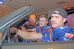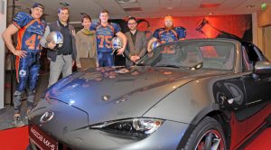 Im VIP Bereich der Stadthalle Rostock fand im Rahmen der Aufführung der weltbesten Trommler (TAO) die Enthüllung des neuen Mazda-Flitzers MX-5 statt. Und so konnte die Gastgeberin des Abends, Frau Claudia Sachs, den Bogen spannen, von der Trommel bis hin zum Schlagen des Herzens, der nun für alle Roadster-Fans sicher wieder ein höherer ist. Und die Griffins als Partner des Autohauses genossen die besondere Ehre, den weltweit meistverkauften 2-Sitzer zu enthüllen und natürlich Probe zu sitzen.